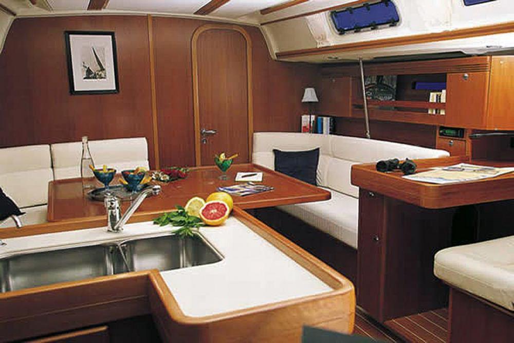 220 V- Landanschluss, Ladegerät, elektrische Bilge- und Druckwasserpumpe, Volt- und Amperemeter, Kompass, Echolot, Logge, Windex, UKW-Seefunk mit DSC, Hafenhandbücher, Seekarten, Navigationsbesteck, Fernglas, Kartenplotter, elektrische Windmessanlage, Autopilot, Rettungsinsel, Rettungsringe und Rettungswesten, Bootsmannsstuhl, Feuerlöscher, Seenotraketen, Nebelhorn, Taschenlampe, Handlenzpumpe, Gasherd mit Backofen, Spülbecken, Kalt- und Warmwasser, Kühlschrank, Pött und Pann, Fender, Festmacher, Bordwerkzeug, Bootshaken, Heizung, Sprayhood, Radsteuerung, Radio/CD,